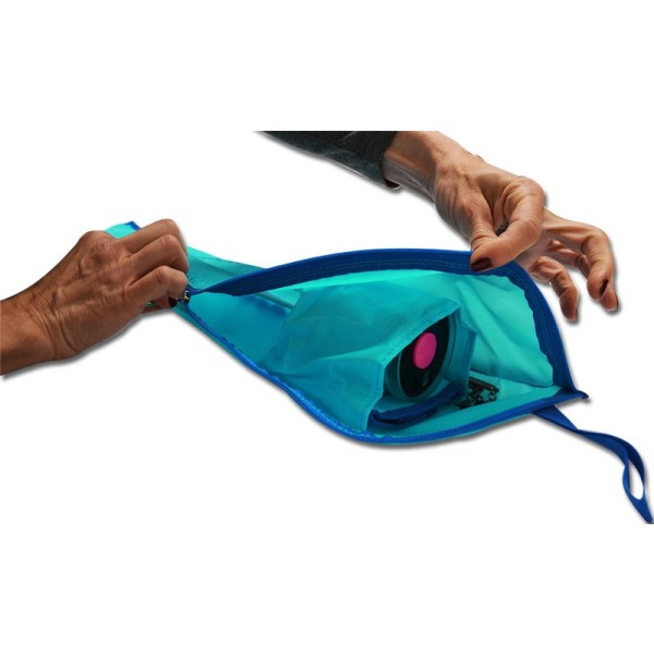 Porta nastro e bacchetta in tessuto impermeabile.All’interno è presente una tasca dove può essere riposto l’avvolginastro borsellino o l’avvolginastro Speedy. La bacchetta può essere lasciata attaccata al nastro.